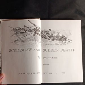 Scrimshaw and Sudden Death: Brian O'Brian. First edition 1959. No dust jacket. Very good condition. Pages are clean, and there is no yellowing. Inscribed on page illustration. Fascinating accounts into the world of whaling.