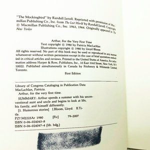 Arthur, For the Very First Time by Patricia Maclachlan and illustrated by Lloyd Bloom, 117 pages hardcover with dust jacket.