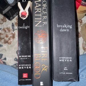 G R R Martin book has never been used. It’s brand new. The others are just throw ins but that one in 22 regular. Twilight and Fire and Blood are Paper back. Breaking dawn is hard back.