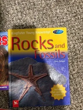 Assorted children's and young reader books. Bright illustrated covers. Variety of topics including dinosaurs, rocks, sports, and adventure. Great for expanding a kid's library.