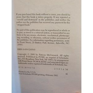 Written by Patricia McCormick in 2000 and rewritten in 2002. I bought this book at a sale (its not stolen from the libary) I read it and enjoyed it for the most part.