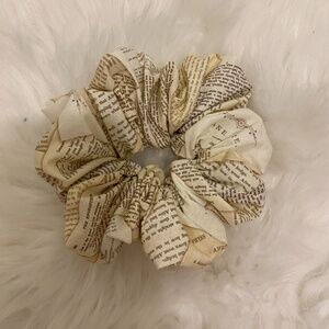 Book Pages Print Hair Scrunchie. Multicolor . Medium. Color is in between off white and cream. 100% Cotton. Machine Wash Cold Gentle Cycle. Line Dry. Measurements shown in the photos. Perfect Gift For Someone Who Loves to Read.