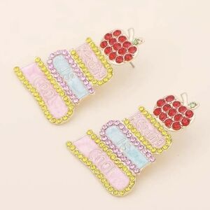 Book and Apple Drop Charm Reading is Cool Rhinestone Earrings in Blue & Pink NWT