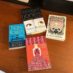 Bridget jones diary Bridget jones the edge of reason Hidden riches by Nora roberts PS I love you by Cecelia ahern One hard cover rest paper back , most in great condition