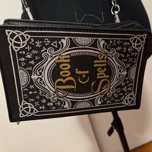 The Spell Book Crossbody Bag is a great purse for the Halloween season! With chain strap and zipper closure.