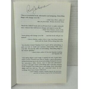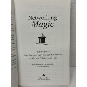 Networking Magic Book -Find the Best from Doctors, Lawyers and Accountants to Homes, Schools and Jobs by Rick Frishman and Jill Lublin co-authors of the National Bestseller Guerrilla Publicity. Book is in pre owned condition. Signature on inside page but not sure if its the authors or not. Please see photos for details. No other marks inside that I see. There is markings on top part of pages edges -see photos as they are part of my description. Spine and covers are in good condition. From a smoke free and pet free home.