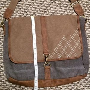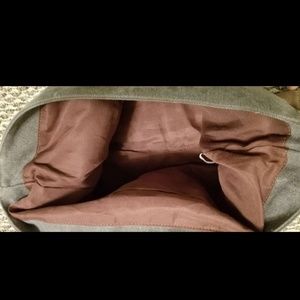 Bookbag is in great condition has vintage look. Has a stains on the inside flap. I believe it will come out if washed out but I'm scared to wash it and mess up the bag. Inside the actual bag is clean and out side.
