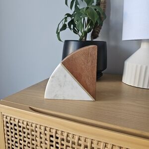 Wood and Marble Bookend. Minor wear on the bottom. Solid and heavy.