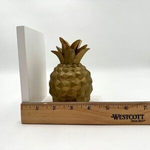Golden Pineapple Bookends. Perfect for bringing a touch of tropical charm to your bookshelves. This pair of bookends is not only functional but also serves as a beautiful decor piece for your desktop.