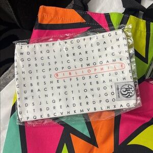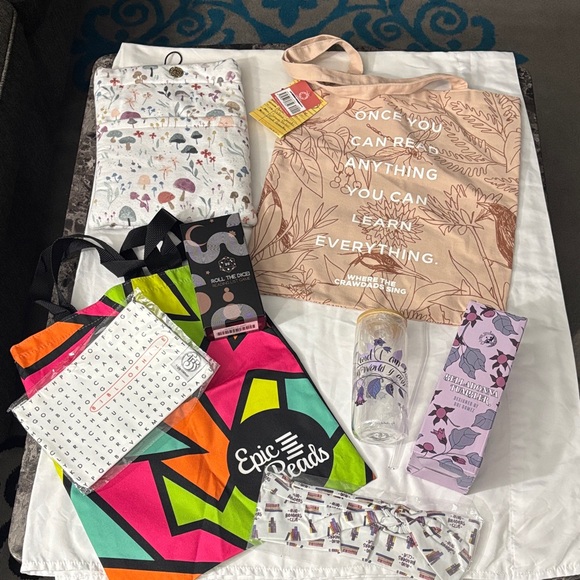 Set of vibrant tote bags and accessories. Includes a variety of colorful designs and patterns. Perfect for shopping or casual outings. Perfect for the book lover in your life! Open to all offers. Includes:
