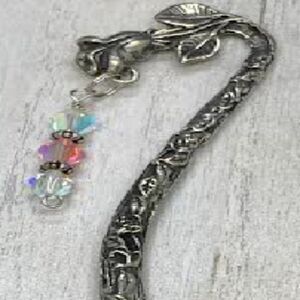 Pewter Bookmark with Floral design and decorated with Swarovski Crystal dangle ~ book not included