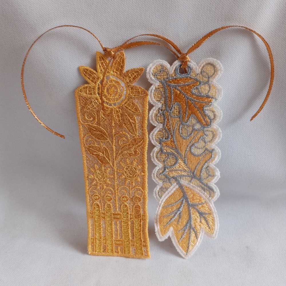 2 handmade lace stitched bookmark. bookmarks measure 6 inches long and 2 inches wide. #6