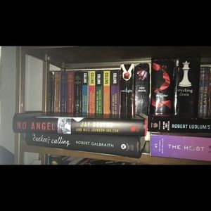 As you can see I have several books, I’m trying to clean out my closet that includes my book shelve. If you see a title you are interested in please let me know. I am happy to make a separate listing for the book you want. Most of these books are in awesome condition and would love these to go to new homes. Sequels are sold together, please ask questions I’m very active on this app.
