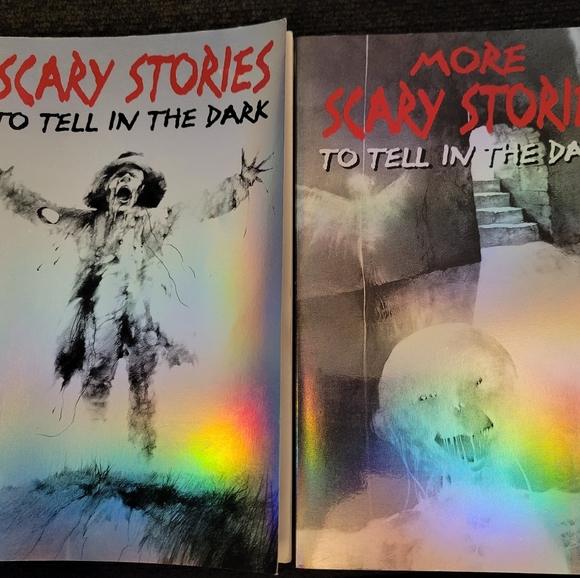 2 out of the 3 Scary Stories books, softcover, all original illustrations. There is a tiny bit of what looks like water damage on the first few pages of book one, but no other rips or damage. They've been sitting in my bookcase for years, and I recently received the box set of all three books.