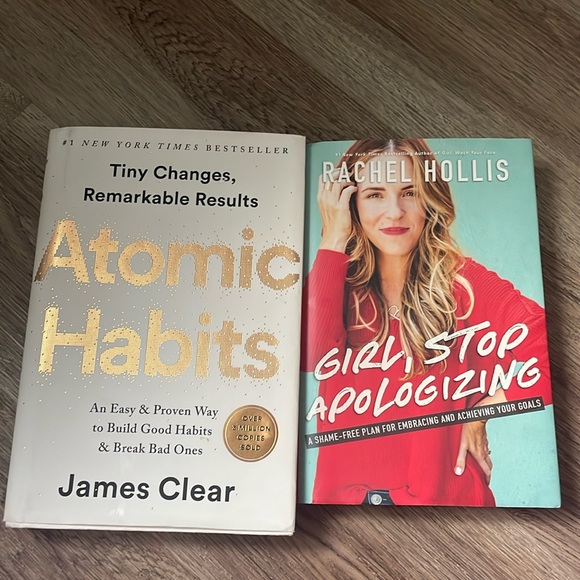 Atomic Habits and Girl Stop Apologizing. Each new are $25-30.