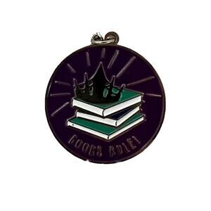 Books Rule! Keychain - Circular Pendant Stack of Books Crown