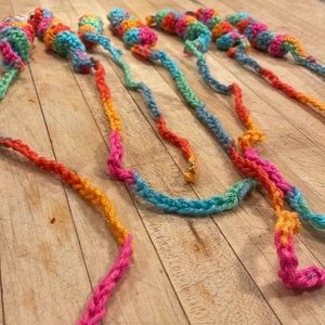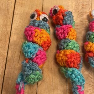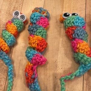 Hand made bookworms! These lovely creatures will mark your place in your favorite book. These crocheted friends are approx 12” - 18” long, each is unique. Price is for one worm.