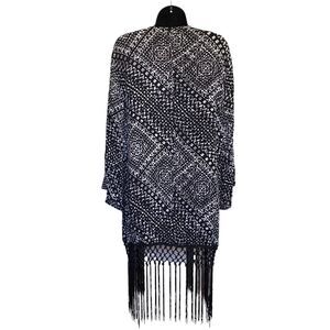 Boom Boom Jeans Abstract Print Macrame Fringe Open Front Cardigan Cover-Up Sz L/XL