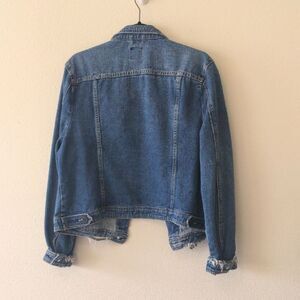 This preloved Boom Boom Jeans Classic Blue Denim Jacket is perfect for any casual outing. This jacket offers both comfort and timeless fashion with a twist of distressed detail