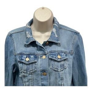 Boom Boom Jeans Cropped Distressed 100 Cotton Jean Jacket Size Small