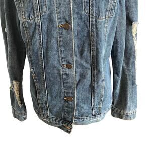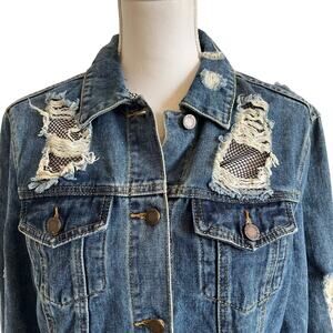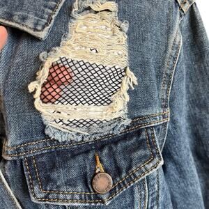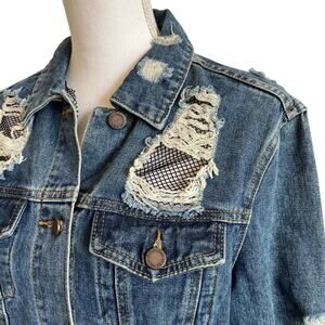 Boom Boom Jeans Denim Jacket Size Small Blue Mesh Insets Distressed Boho Gypsy