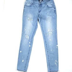 Boom Boom Jeans Light Wash Paint Splatter Distressed Ripped Mid Rise Ski…