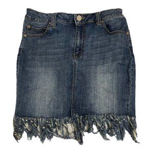 Boom Boom Jeans Womens Medium Denim Pencil Skirt Fringe Cowgirl Stretch