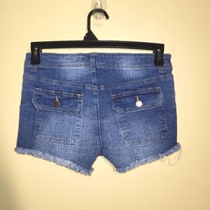 Item: women's raw hem low rise distressed jean shorts, size 11