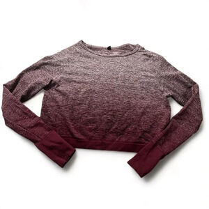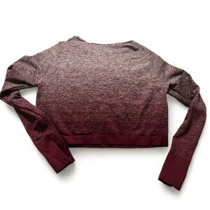 Boom Boom Jeans grey to burgundy long sleeved crop workout top size L/XL. Lots of stretch and beautiful color way. No stains, holes, or odors. Looks like it was never worn. Pit to pit: (unstretched) 17”. Length: 15”