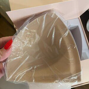 Lightly padded double sided adhesive insert. Can be cut to fit any clothing. Stays put and keeps clothing in place. Washable ans reusable. Opened box but never used.