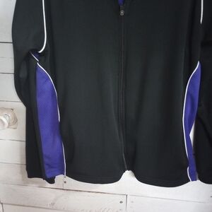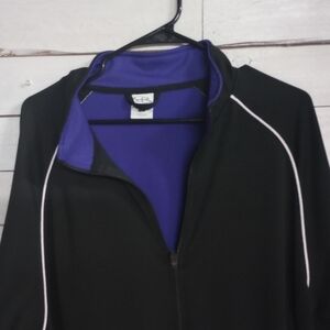 Boombah Mens Size XL Color Block Black & Purple Full Zip Jacket Side Pockets.