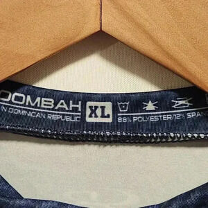 Youth size XL, Boombah fitted shirt. This tagless, crewneck shirt has the theme of Captain America. It is made of polyester and spandex, was made in the Dominican Republic, and is machine washable.