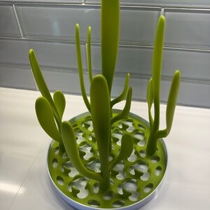 Stylish green bottle drying rack. Perfect for organizing kitchen essentials.