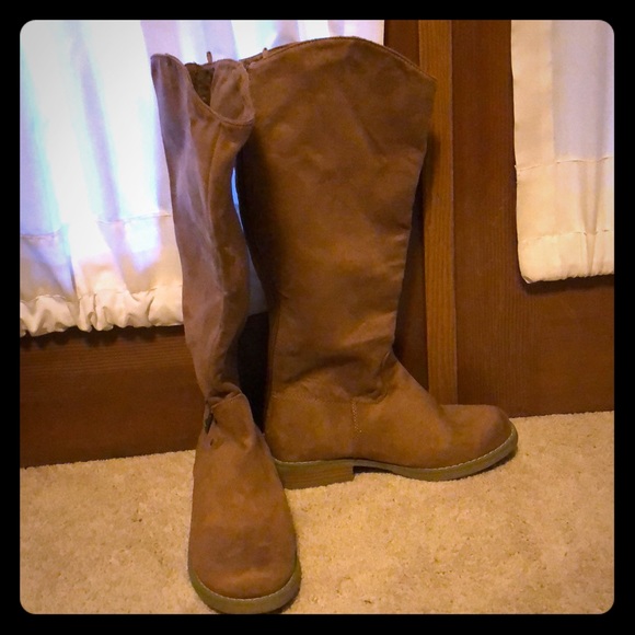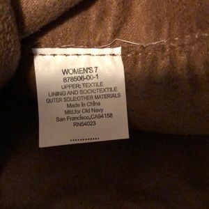 Tan colored faux suede buckle detail small heel boot by Old Navy. Size 7. Worn once.