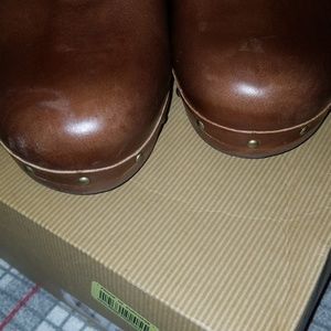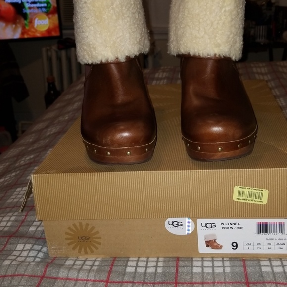 leather ugg boot....worn once...alittle 2 high in the heel area 4 me...alittle scuff on right top toe area...barely noticeable...excellent boot