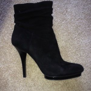 Black suede heeled boot
