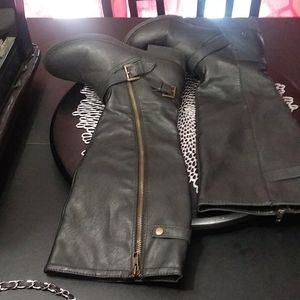 Black plether under the knee boot with zipper
