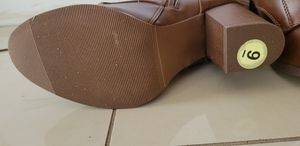 Brown leather boot with soft artificial skin to keep feet warm .