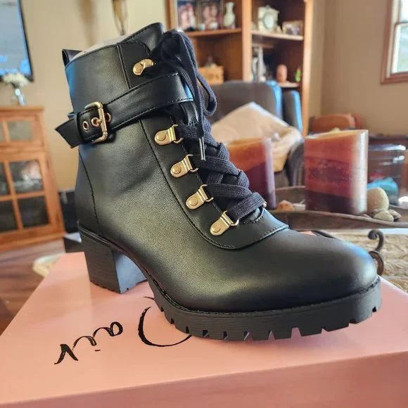 Black boot. Gold accents. 9.5