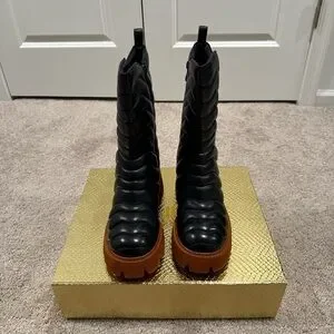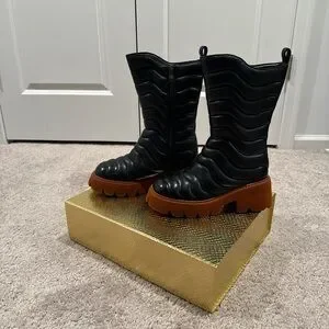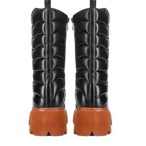 JenniferLe Black Leather Platform Boot w/ Side Zipper.