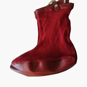Boot Bag Carry Storage Cowboy Western Travel Shoe Case Red Felt Leather Vintage