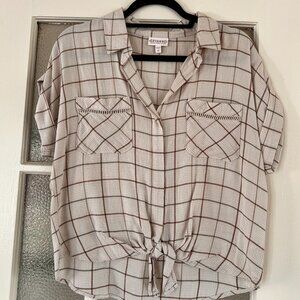 Very cute western shirt with a tie-front. Perfect for horse riding or a cute in-office blouse. Worn once!