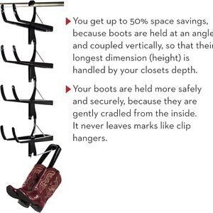 Sound about right? Boot Butler fixes that, and fast. Each Boot Butler holds five pairs of your boots. It hangs them straight, keeps the shafts rigid and allows them to naturally maintain their shape.