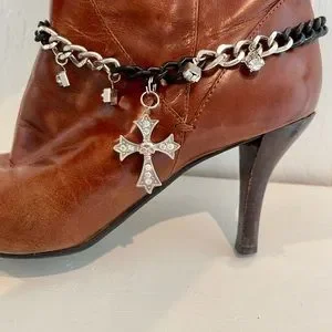 Cute boot charm. Adjustable, Black, silver with bling