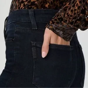 Stylish dark denim jeans, high rise fit to elevate any outfit. Must-have PAIGE Jean, spandex adds stretch to fit, these jeans will snatch you up, and feel so soft to touch.