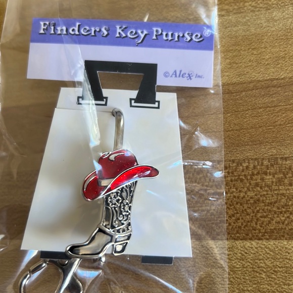 Cowboy Boot & Hat Key finder. A stylish purse/bag accessory to decorate the outside of your purse/bag & prevent keys from falling to the bottom. Keys are safely secured inside your purse & instantly retrievable. Just attach your keys to the clasp and slip over the edge of your purse, backpack, gym bag, or brief case.