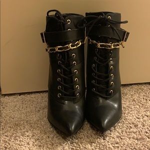 Wore only a couple of times. The heel on the left is a little scratched shown in the pictures. Other then that perfect conditions.