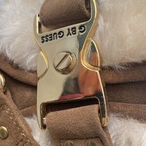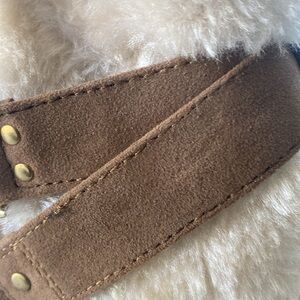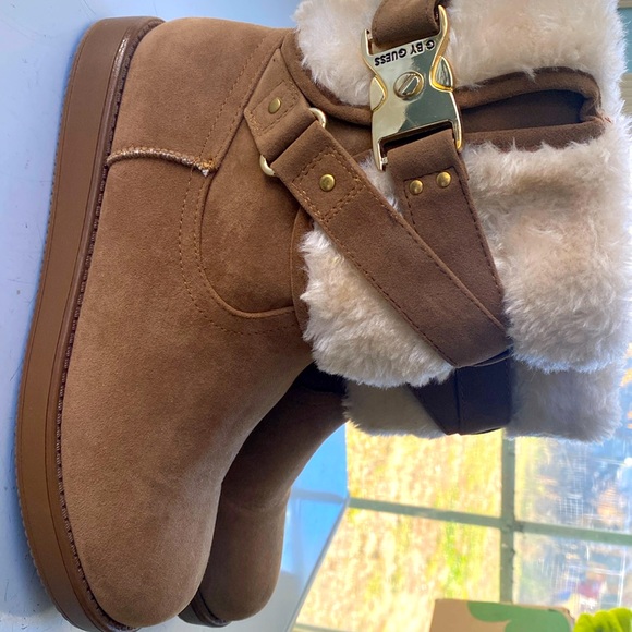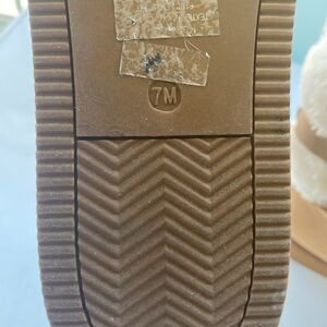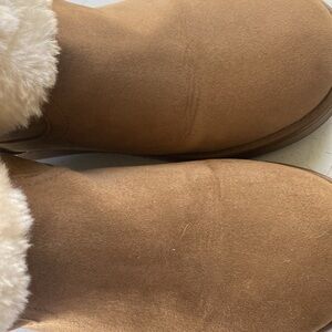 Close to brand new! Brown boots, faux fur leg lined, with sole and tread. Faux buckle, in great condition!