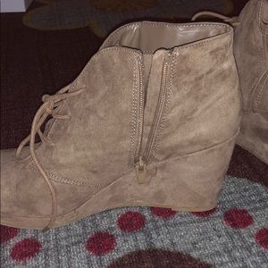 Taupe wedges from target! Women’s size 11. About a 3” wedge. Zipper on the size and tie in the front!