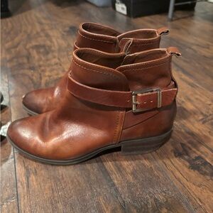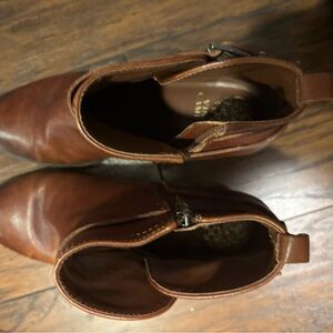 Black boots are from target they were only worn a couple times. The brown boots are Vince cumuto, have some wear on the front toe area ( as pictured) but still have a lot of life yet.